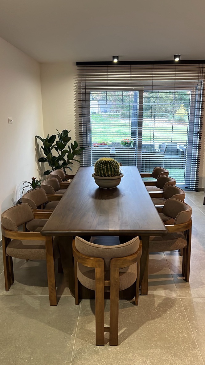 De Handai eettafel is tijdloos en elegant, de natuurlijke materialen en vormgeving maken de look die rust en harmonie uitstraalt. De warme walnoot aardetint past er goed bij en complementeerd deze Japandi stijl. De tafel is gemaakt van massief mangohout met een optiek van 5cm dik blad met verfijnde details, een meubelstuk met een robuust doch sierlijk karakter, geheel in balans!